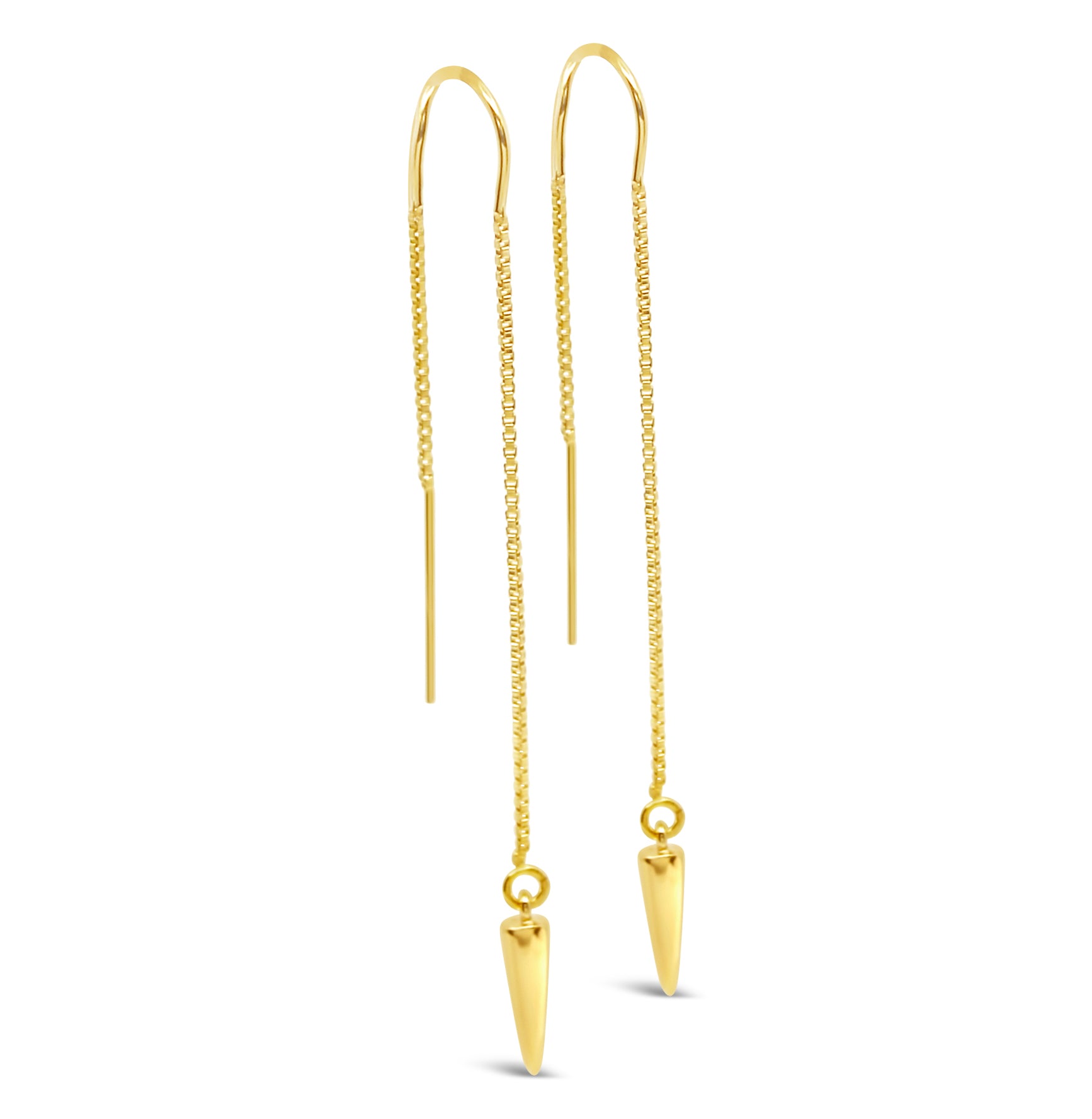 Simple and sexy earrings with tiny spikes that hang from box chain ear threads.