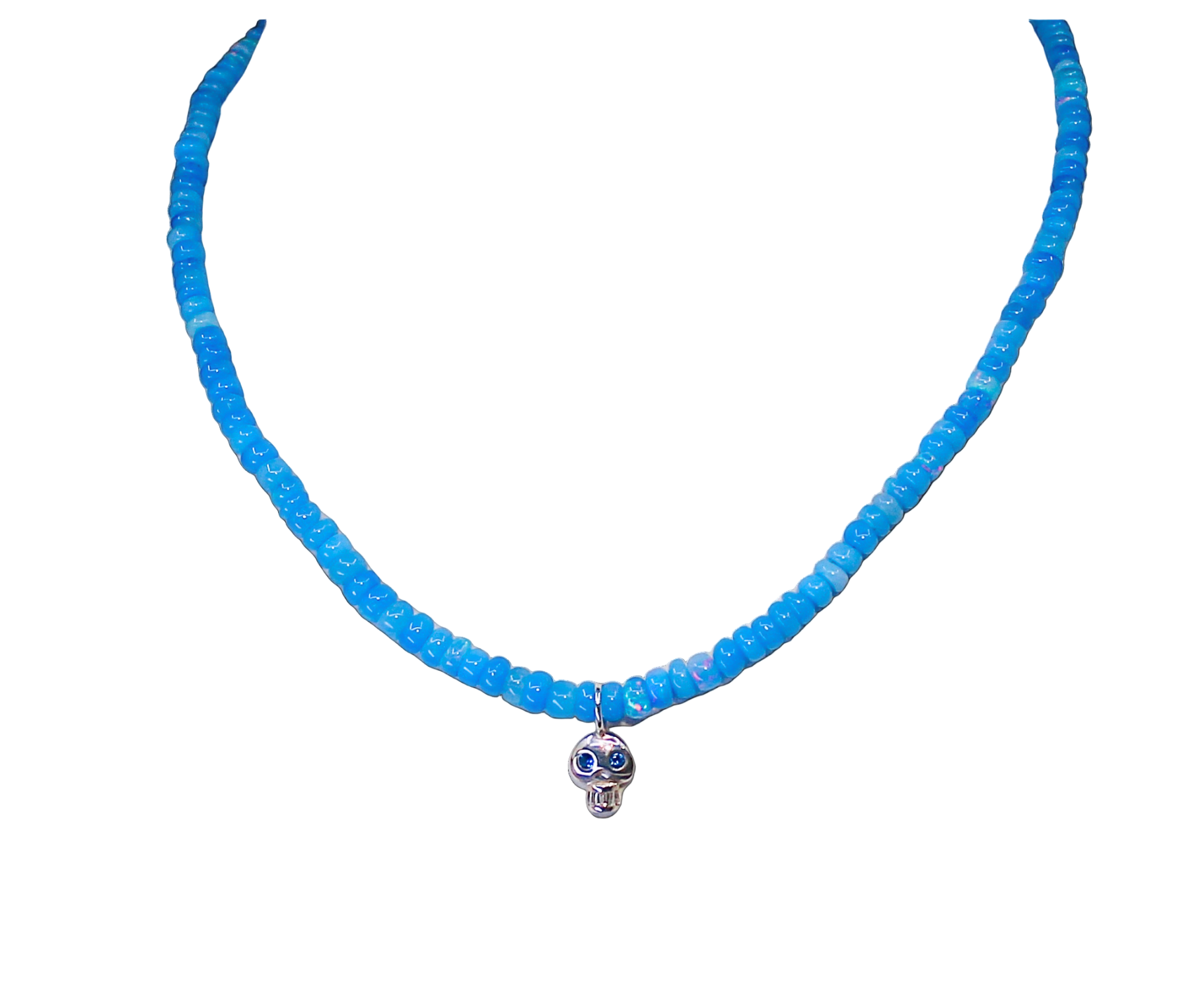 Blue Opal Skull Necklace