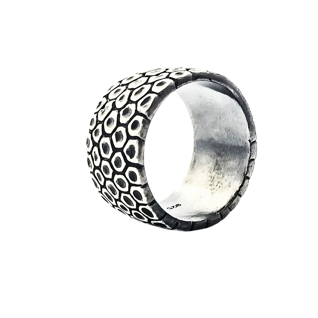 Savor in the natural sweetness of the Honeycomb ring. The hexagon pattern of the honeycomb pattern is said to symbolize the sweetness of life.