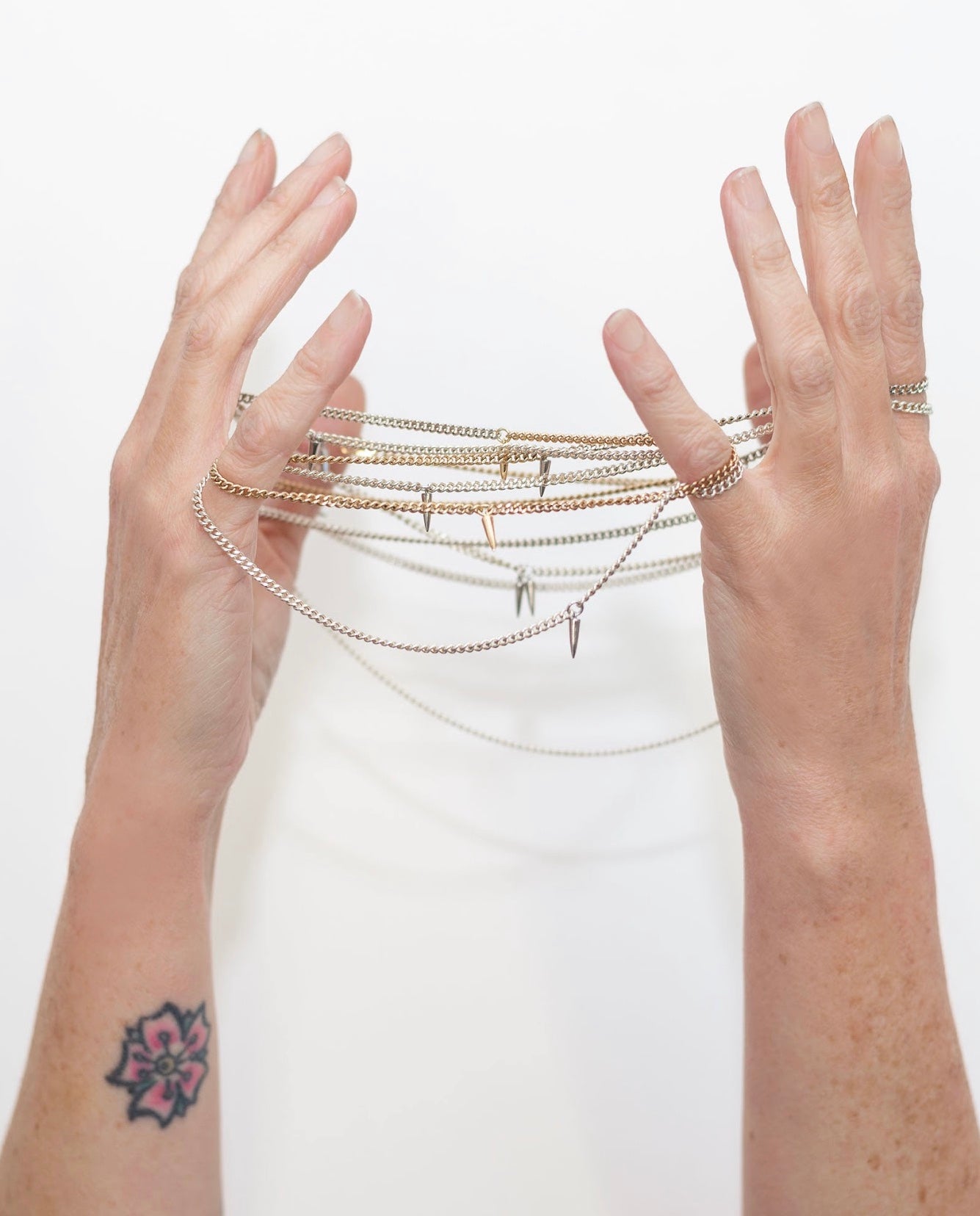 Wrap yourself up in this multi purpose chain accented with tiny spikes. You can wear this necklace multiple ways. Wear it long, doubled up, tripled up, or even as a bracelet.