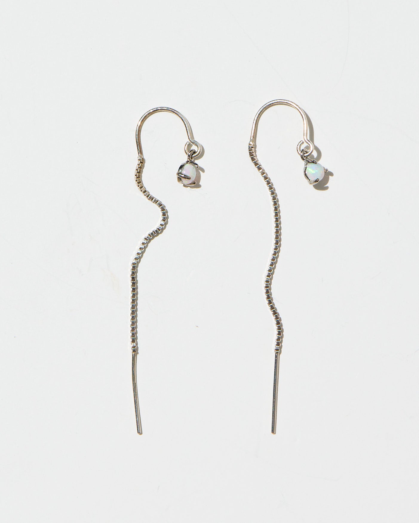 Delicate yet striking, these threader earrings are finished with glowing opals that shimmer with soft iridescence. The slender chain slips gracefully through the ear, creating a fluid line that feels both modern and timeless. Lightweight and endlessly versatile, they add just the right touch of light and movement to any look.