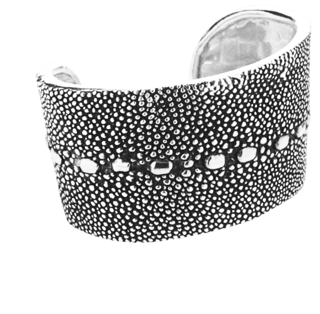Powerful and bold cast in darkened sterling silver with the lush texture of a Stingray this statement making cuff is inspired by the majestic Stingrays shagreen.