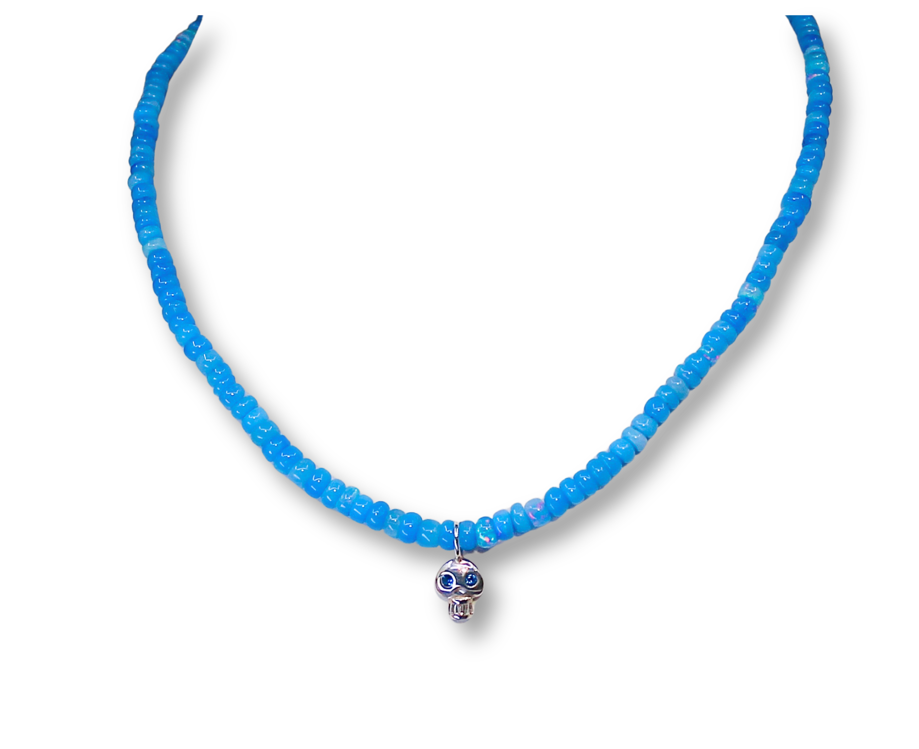 Blue Opal Skull Necklace