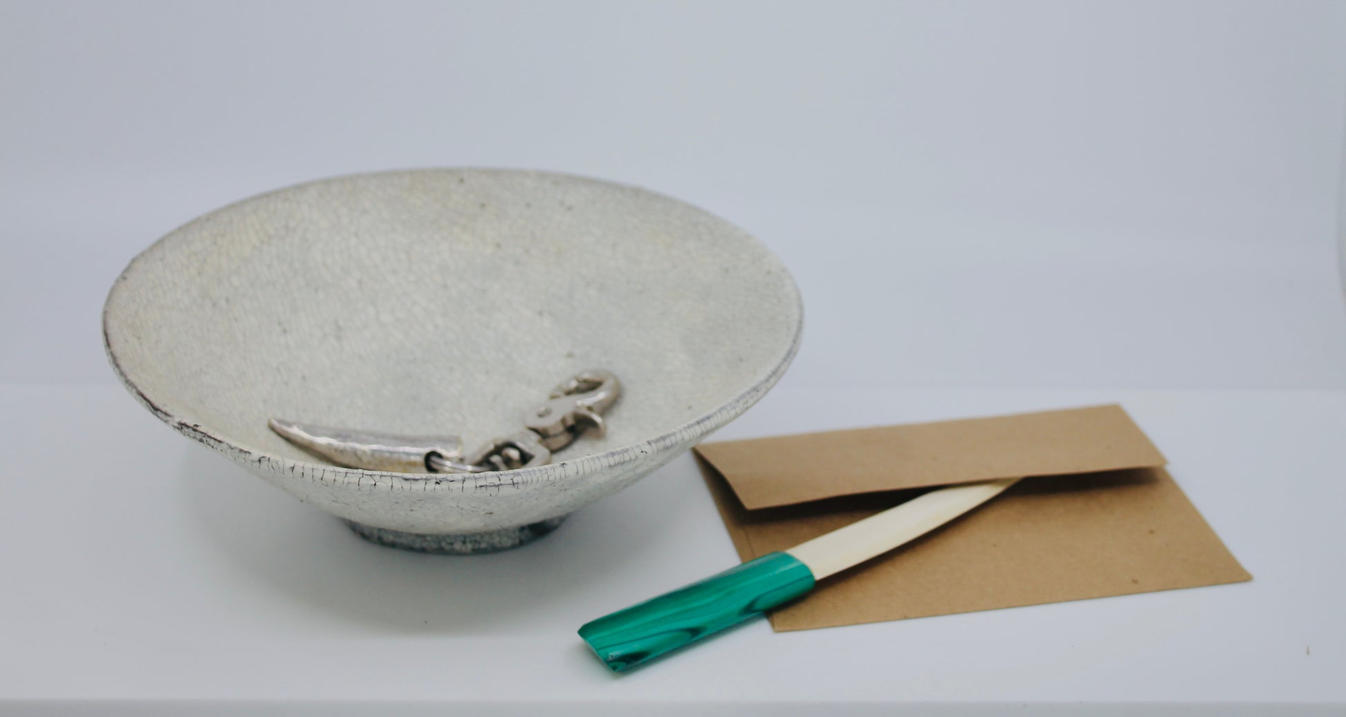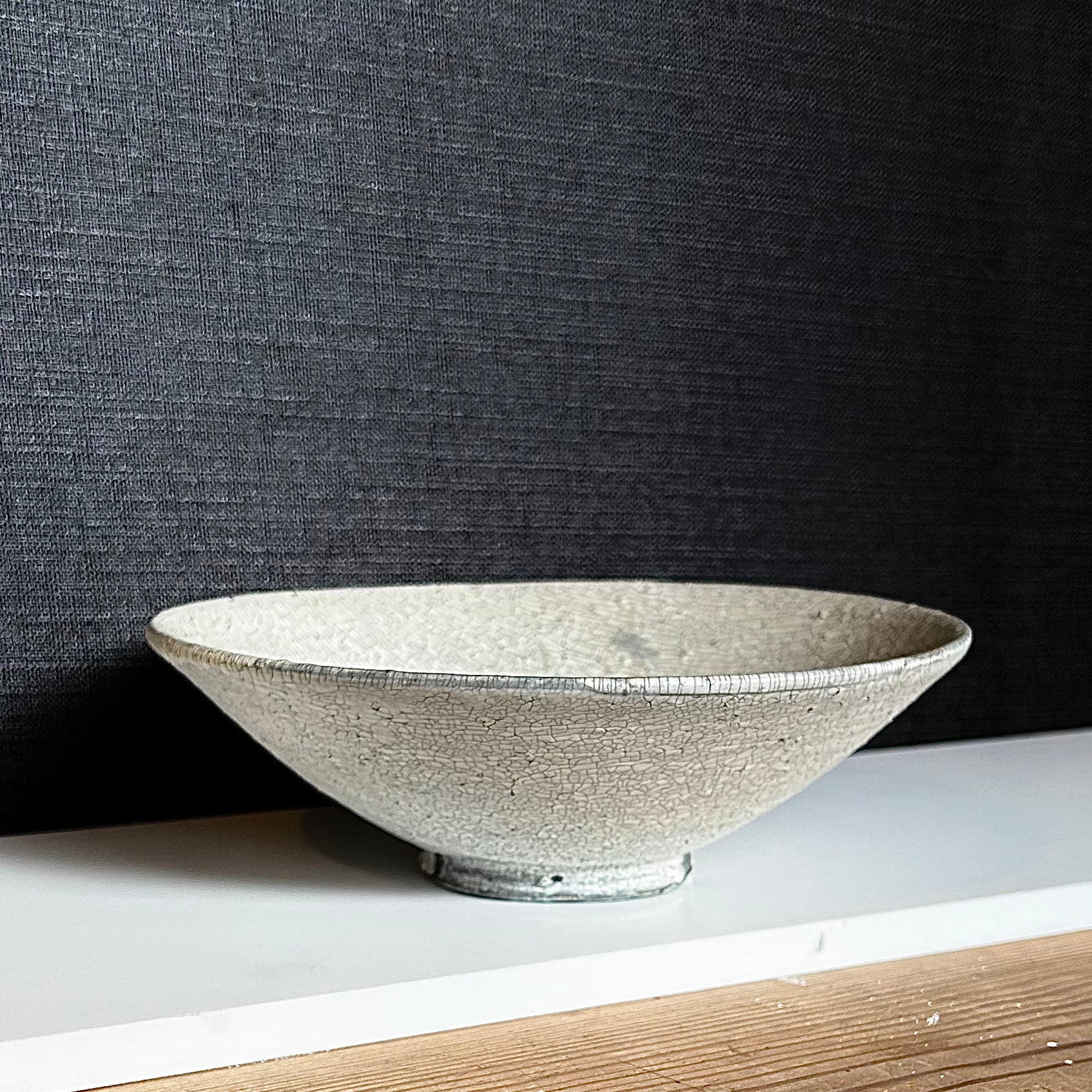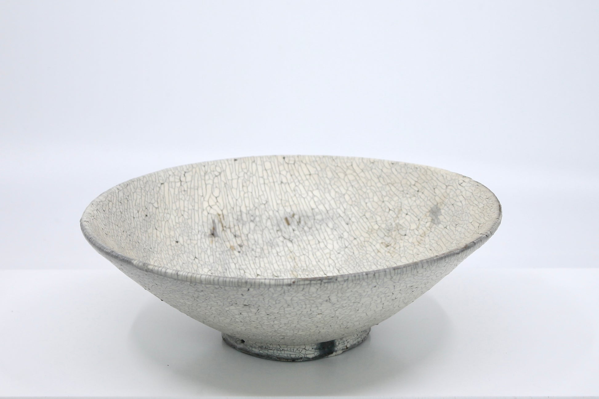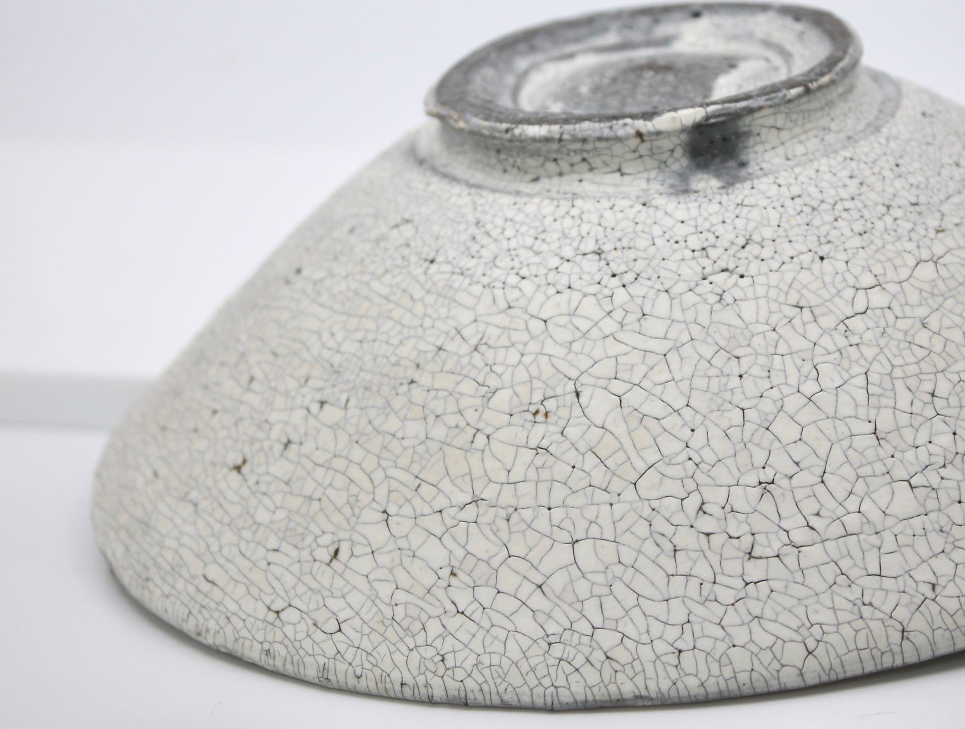 Exquisite example of Japanese Raku in a white crackle glaze.