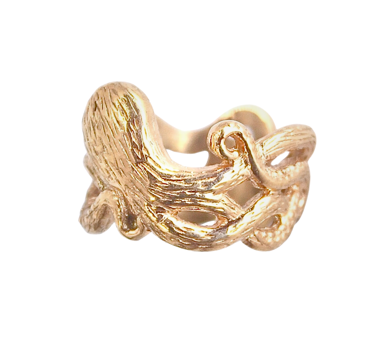 Wrapping around your finger the ever-clever octopi symbolizes adaptability, unpredictability, and strong will. Can be customized with stones of your choice reach out to kim@kimberlybaker for options and pricing.