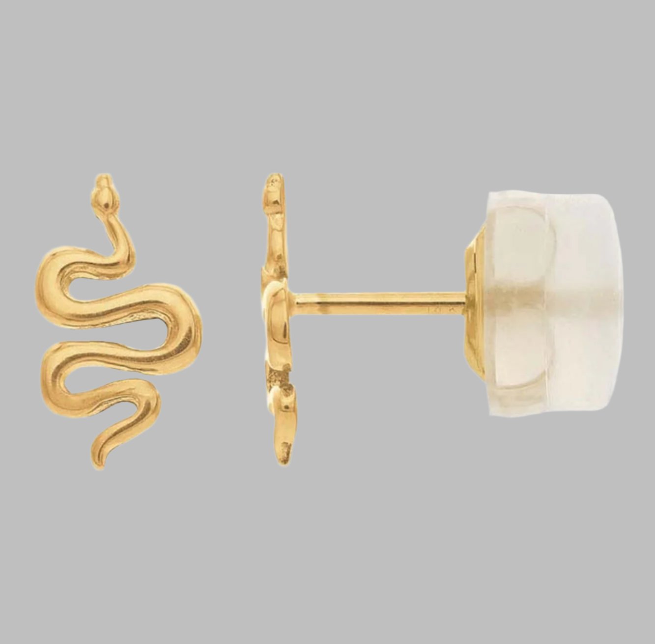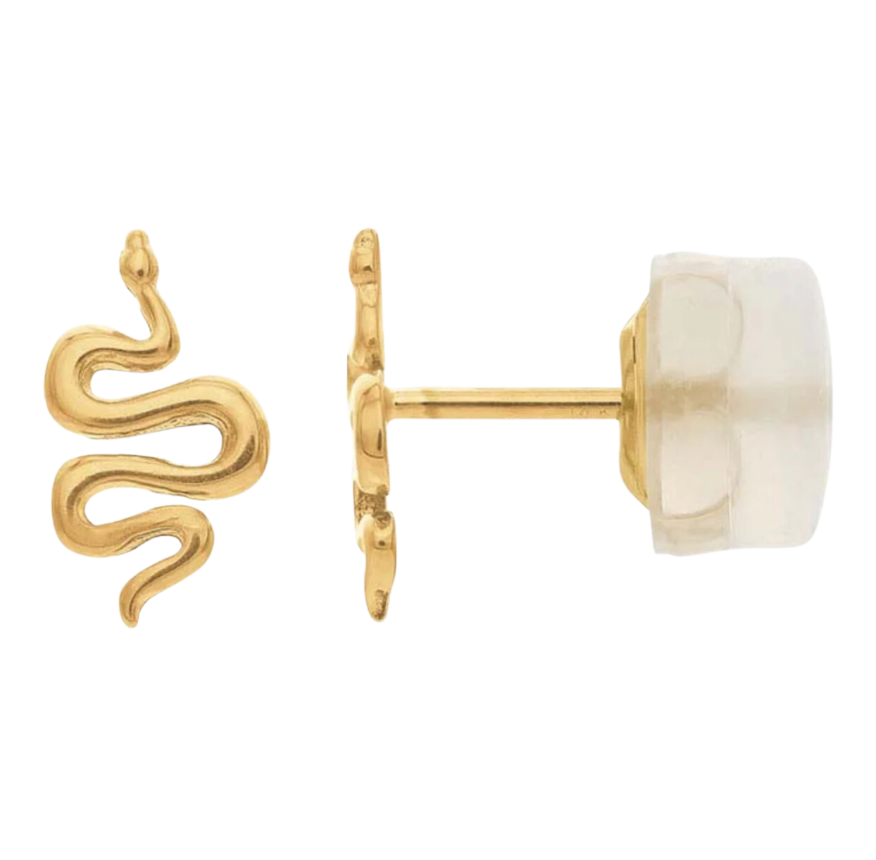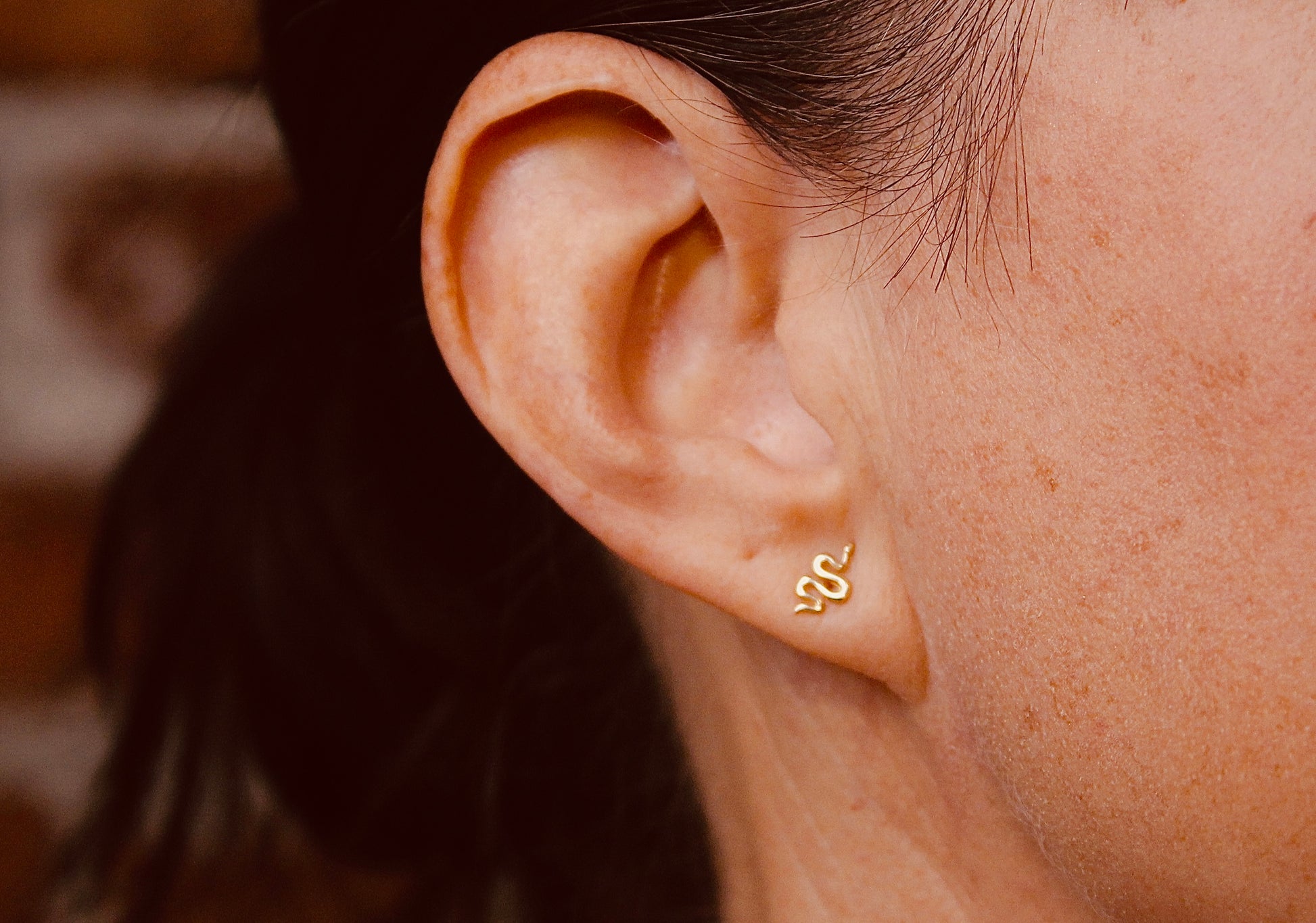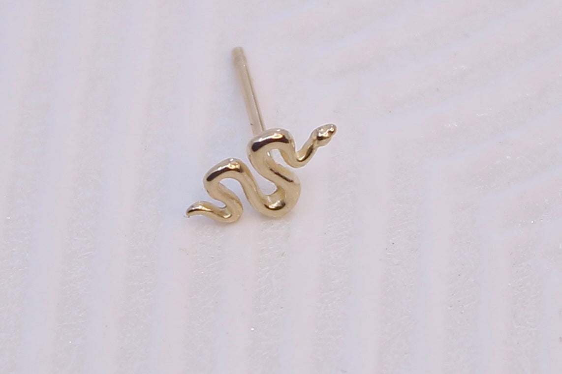 Add a touch of edgy whimsy to your ears with our tiny solid gold Serpent Studs. These delicate gold snake post earrings make a subtle yet fierce statement.